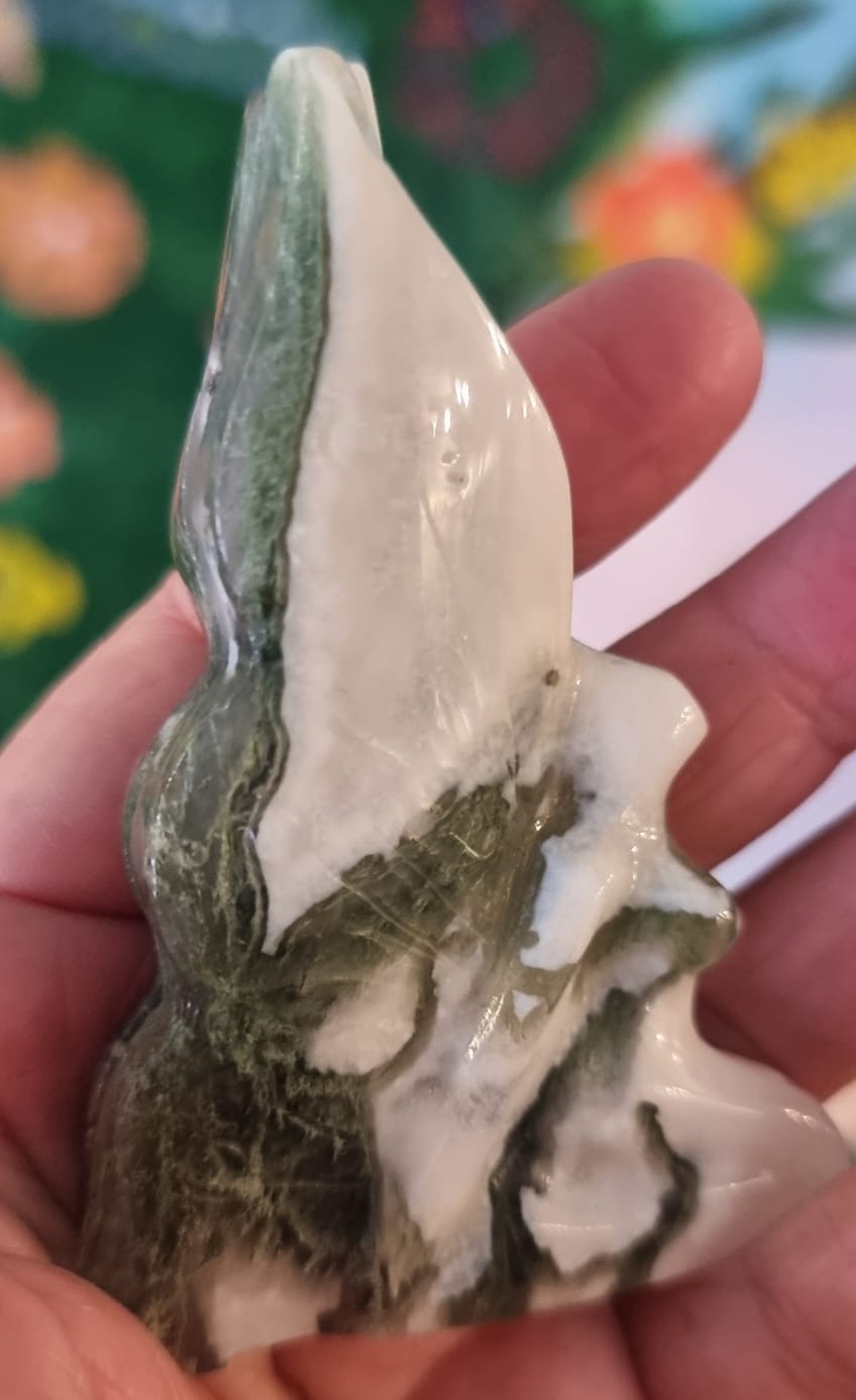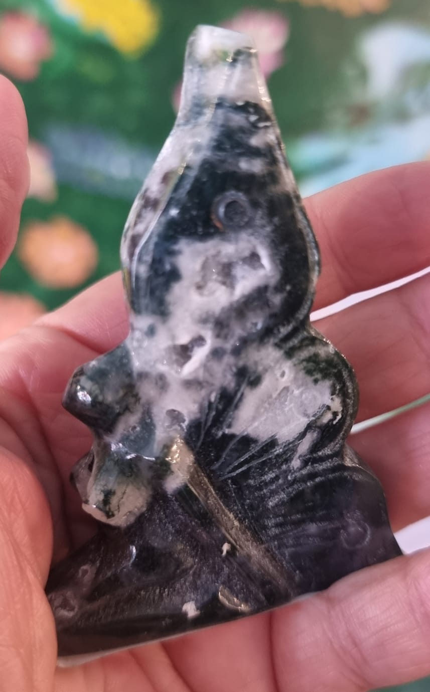 Beautiful Hand carved Moss Agate Fairy, Ideal for a gift or a stunning piece for your collection
