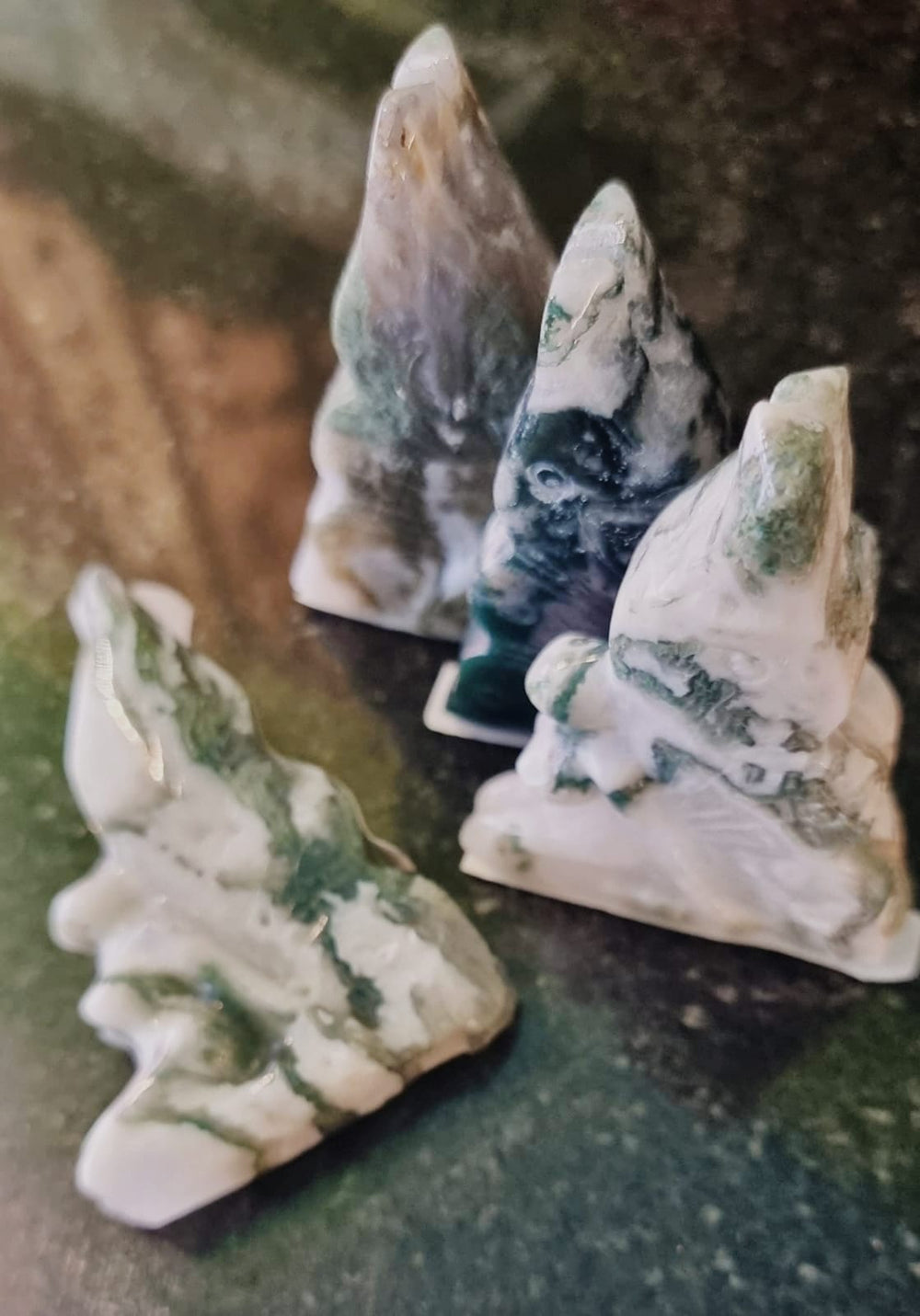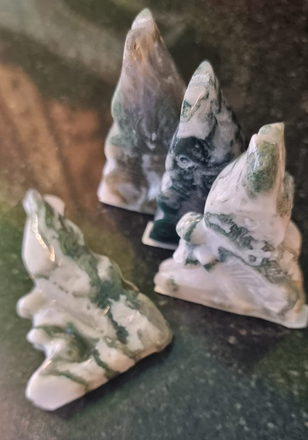 Moss Agate Fairy Figurine + FREE HEMP BAG & Card