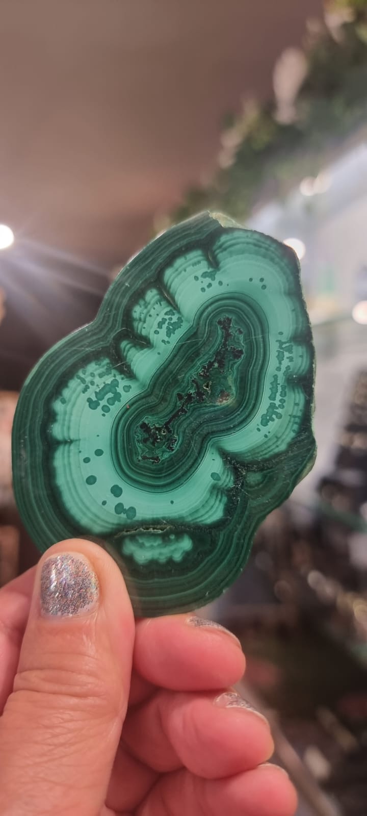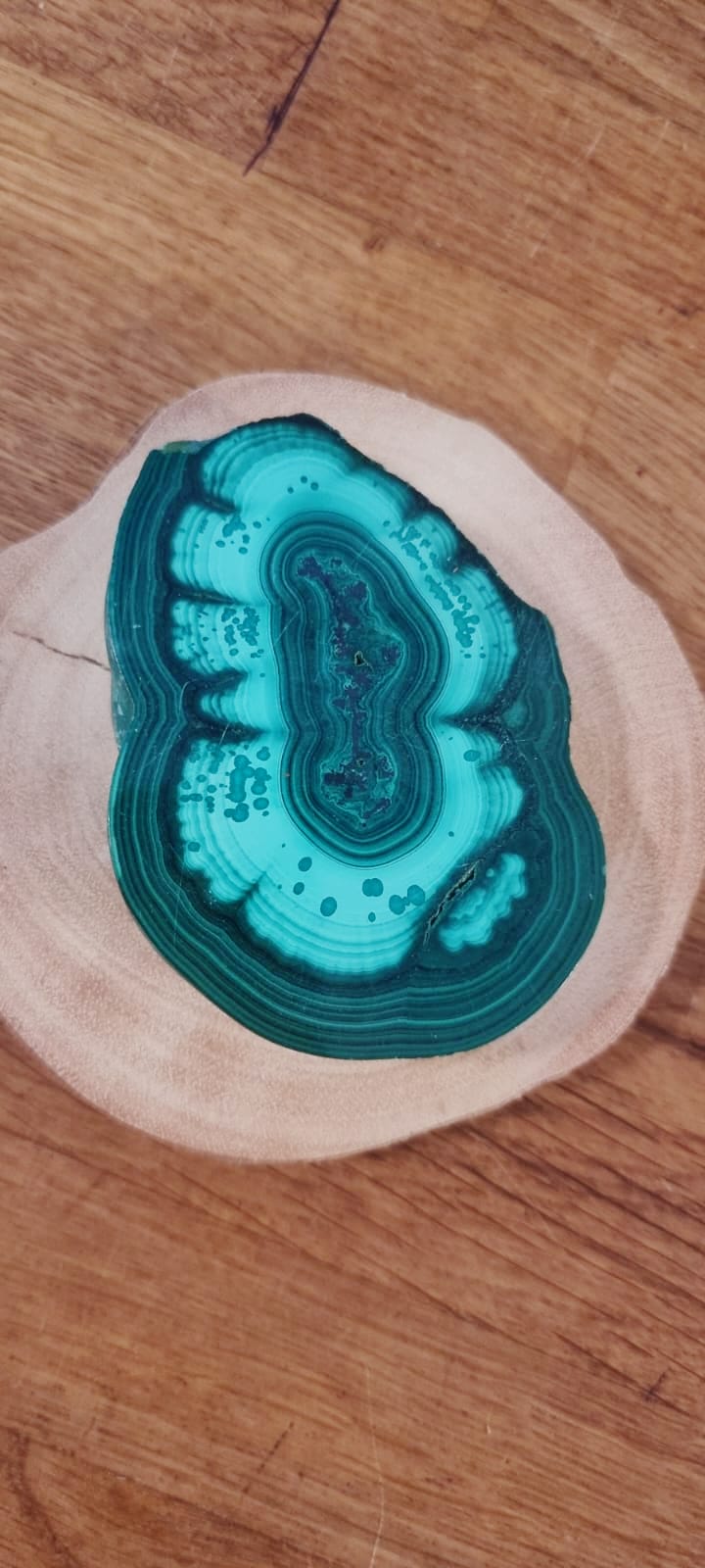 Malachite Slice raw unique design heart shape + FREE wood stand luxury gift