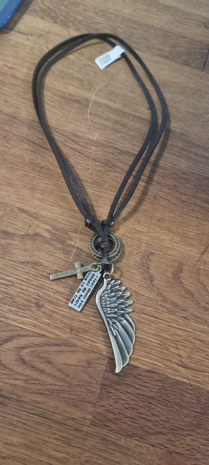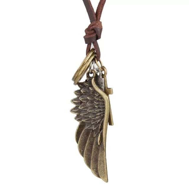 Handmade Alloy & Leather Angel Wing Necklace Mens + Free Velvet luxury bag