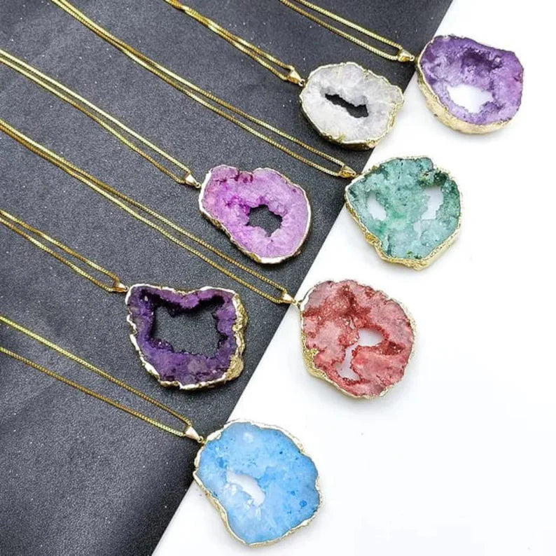 Raw Agate Purple Slice Pendant - Gold Plated Necklace Ground & Protection (Variant purple)